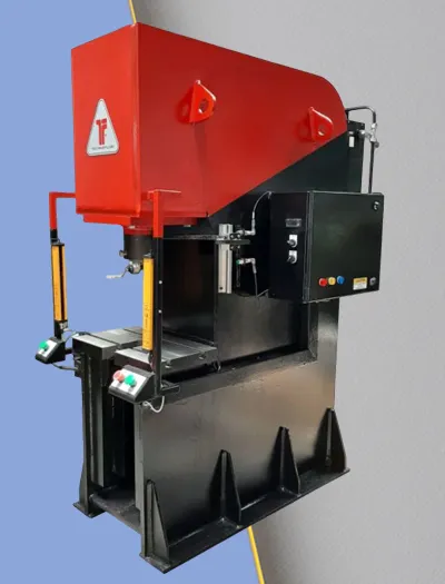 Technofluid Ventures LLP (formerly known as Technofluid) offers robust and efficient C-Column Hydraulic Presses, also known as C-Frame or Gap Frame Hydraulic Presses, designed for versatility, accessibility, and economical operation. These presses are ideal for applications requiring easy access to the die area, quick loading and unloading, and lower tonnage requirements.